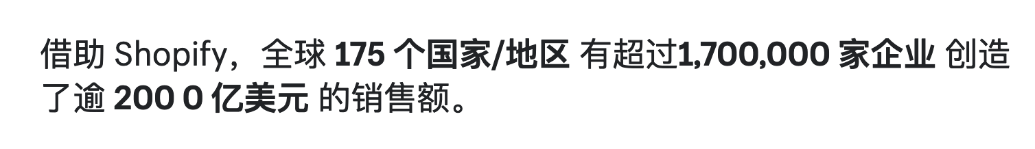Over %{total_stores} businesses in %{total_countries} countries around the world have made over $%{total_gmv_billions} billion USD in sales using Shopify