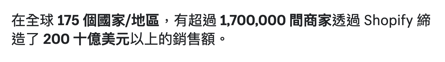Over %{total_stores} businesses in %{total_countries} countries around the world have made over $%{total_gmv_billions} billion USD in sales using Shopify